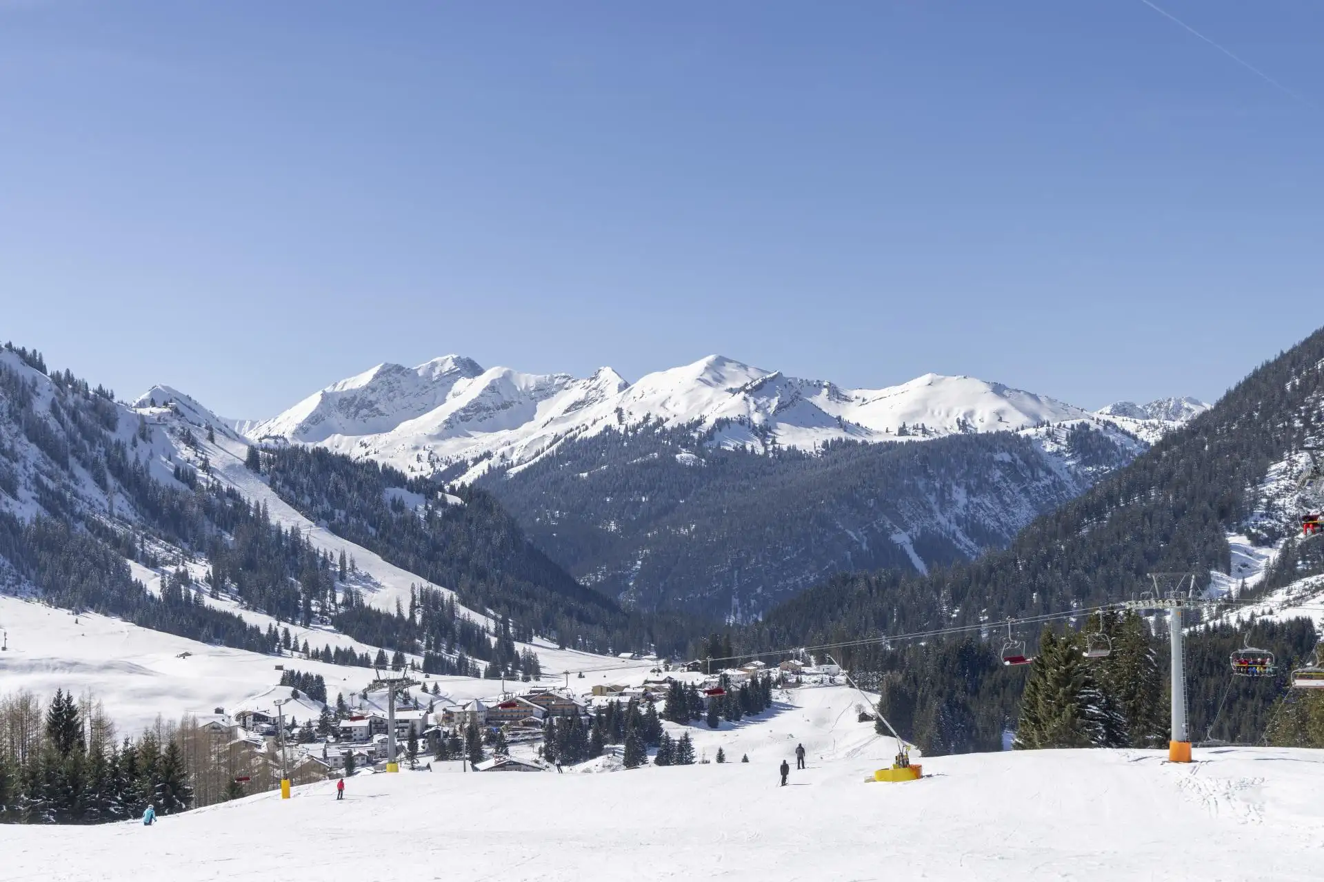 Tauche ein in die verschneite Winterwelt von Berwang. Majestätische Berglandschaften, idyllische Hütten und winterliche Aktivitäten bieten den perfekten Blick auf die Schönheit der kalten Jahreszeit.